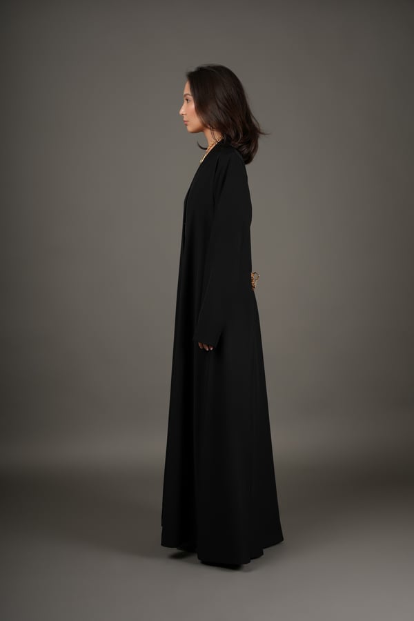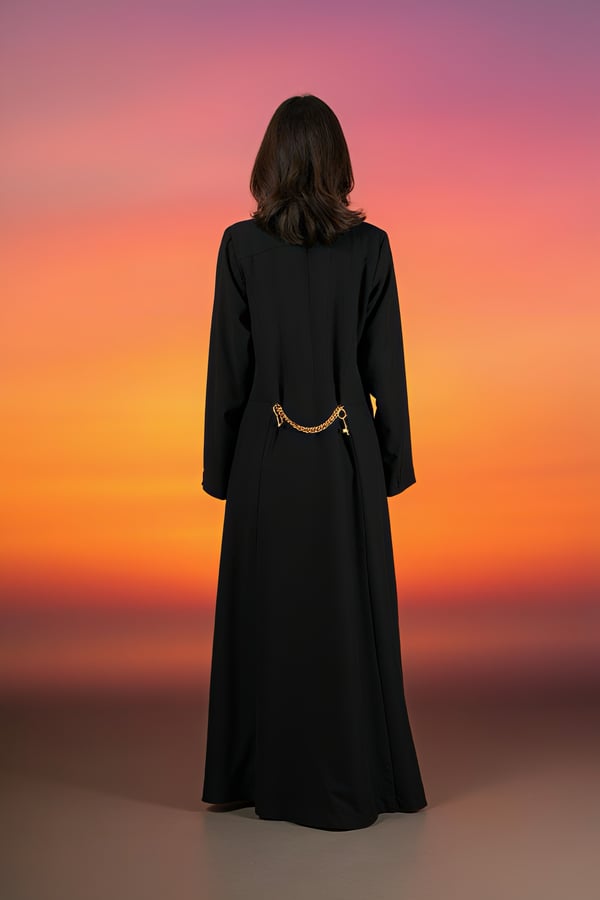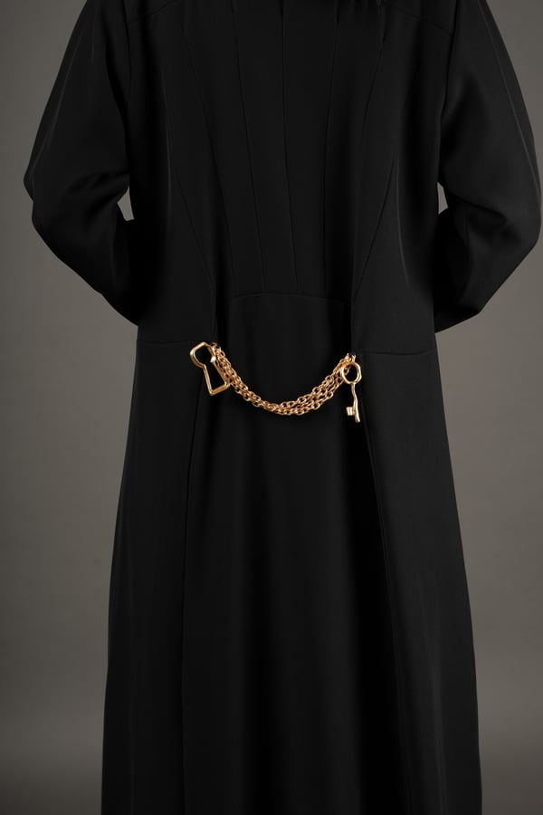 Black taffeta with gold detailing.
