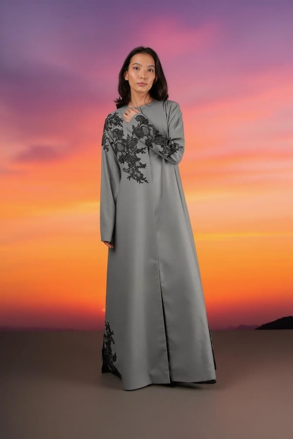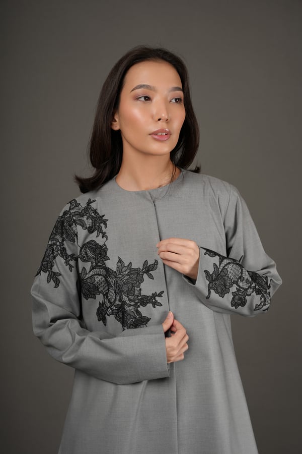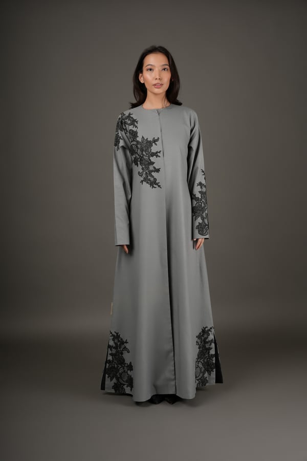 Gray with black lace